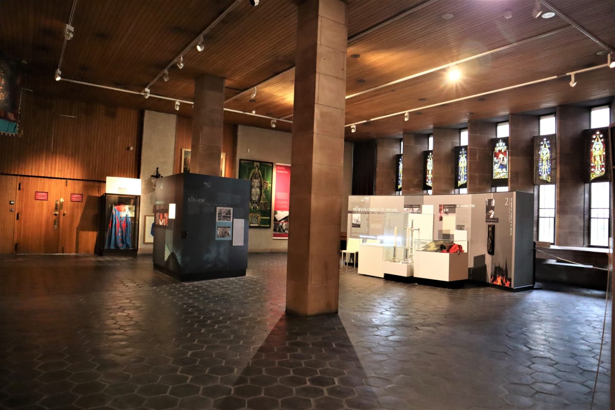 Located in the Cathedral Undercroft, St. Michael's Gallery houses some fascinating artefacts from both the old and new Cathedrals. Visitors can also view specially selected pieces of John Thornton's medieval glass which are set into the gallery windows.