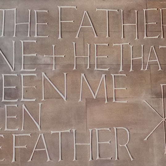 Eight huge stone panels known as the Tablets of the Word, along with the Baptismal font and the greeting set into the floor of