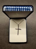 The cross is silver-plated and is approximately 2 x 3cm. The chain is approximately 50cm in length.